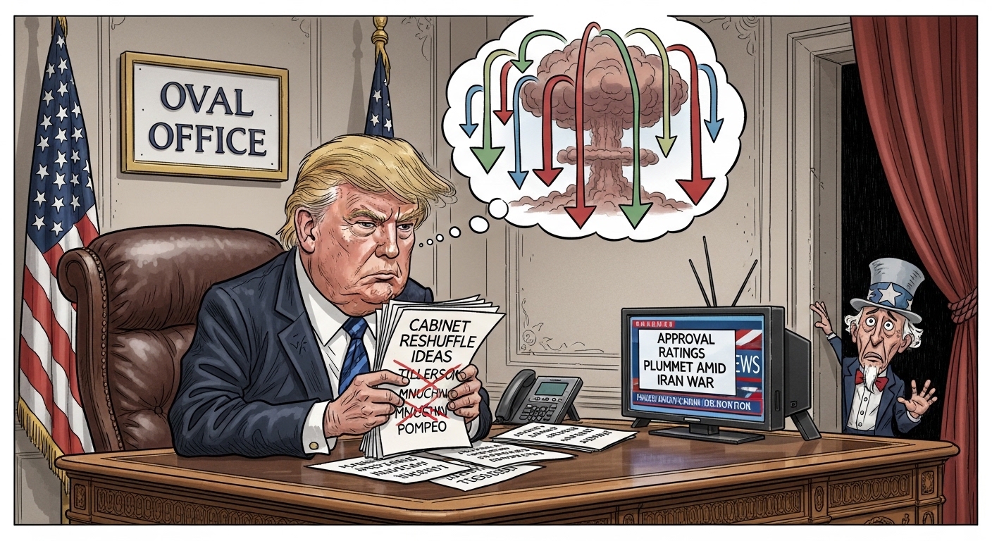 トランプ米大統領が今週のボンディ司法長官解任に続き、より大規模な閣僚刷新を検討していることが明らかになりました。複数のホワイトハウス高官や関係者によると、ガソリン価格の上昇などイラン戦争に起因する経済的影響が支持率を低下させ、11月の中間選挙に対する不安が共和党内で広がっています。トランプ氏が1日に行った国民向けのテレビ演説は不発に終わったとの評価もあり、これが閣僚刷新の動機となっているようです。