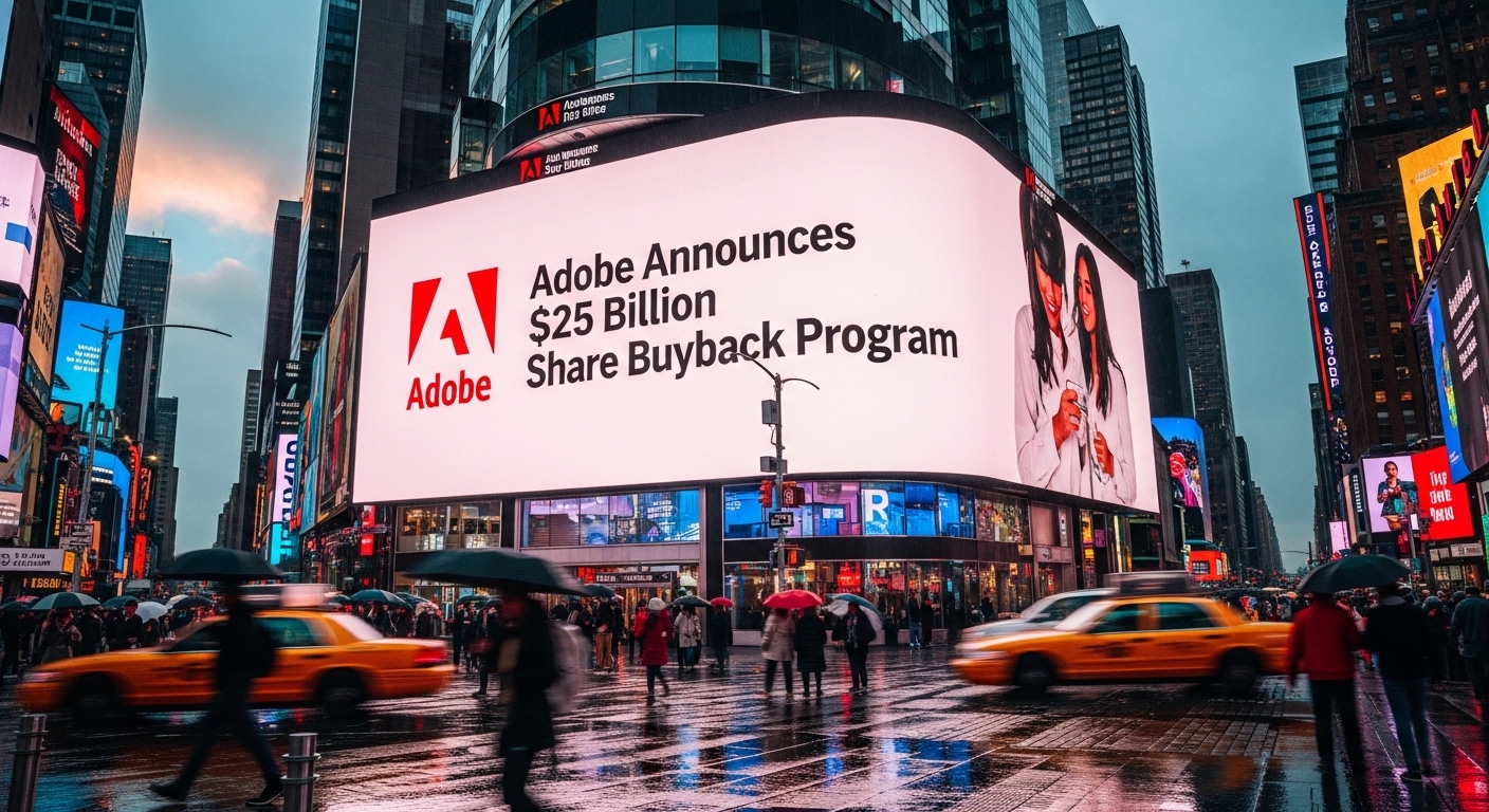 米アドビは、2030年4月までに最大250億ドル(約4兆円)の自社株買いを実施することを発表しました。この決定は、同社の株価が生成人工知能(AI)の影響で低迷していることを受けたもので、株主への価値還元を目指しています。