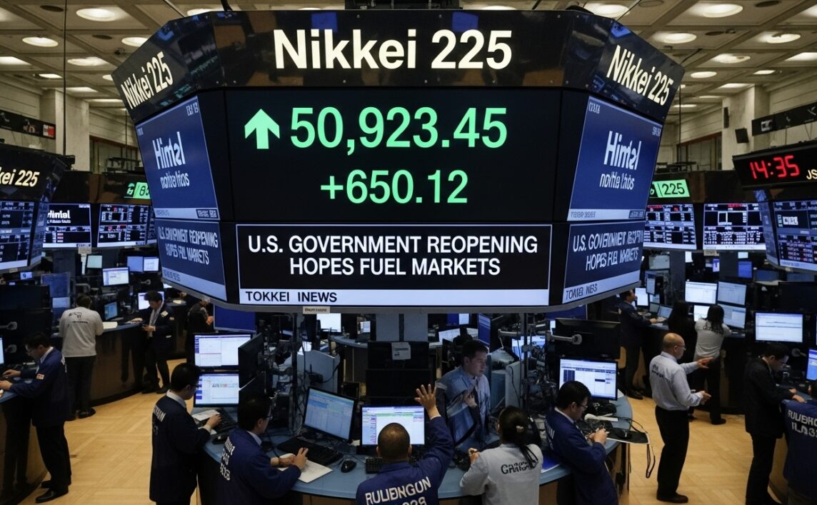 Stock日経平均株価、米政府再開期待で650円高の5万0900円台前半で推移