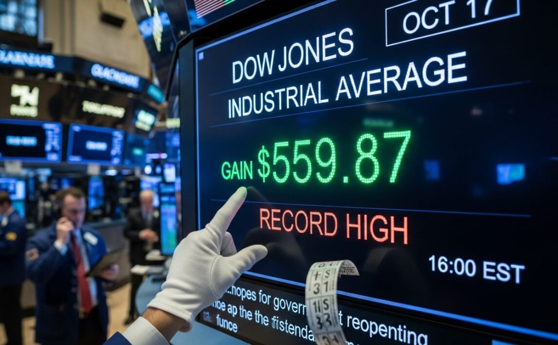 Stockダウ工業株、政府機関再開期待で559ドル高の最高値更新